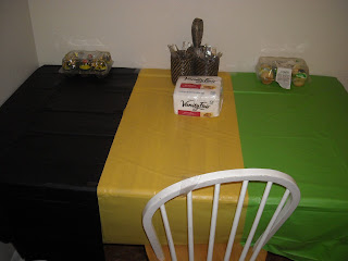 But the sad thing is, we really don't know a lot of people here, and the few that we do know where on a stand-by watch. So we only had two people over at our house. But Sam and I had great food and we got the house was in black, green and yellow all over. Ha ha Sam was going for the Steelers and me the winning time Packers! So we had both team colors up. It was fun, half time was so bad, and our two guys had to go study for their test tomorrow. But all and all it was a great day.